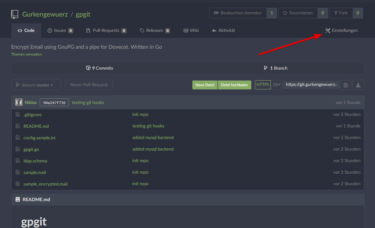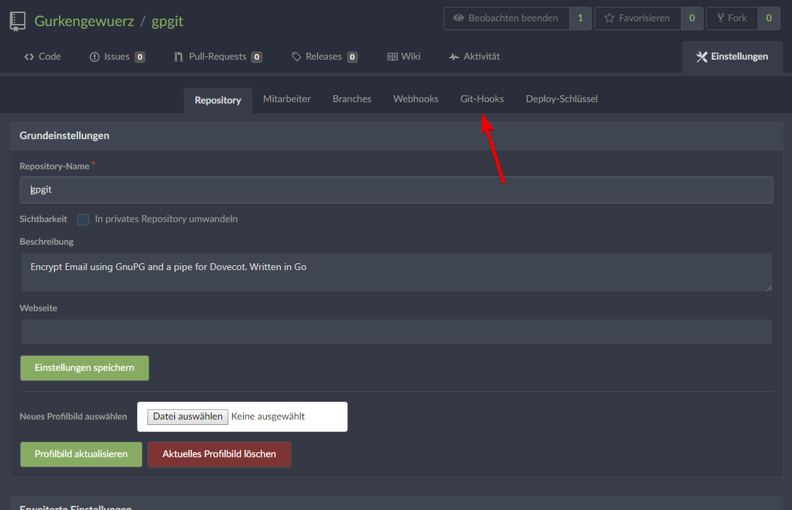 - Einrichten des post-receive Hooks in dem zu mirroren Gitea repository