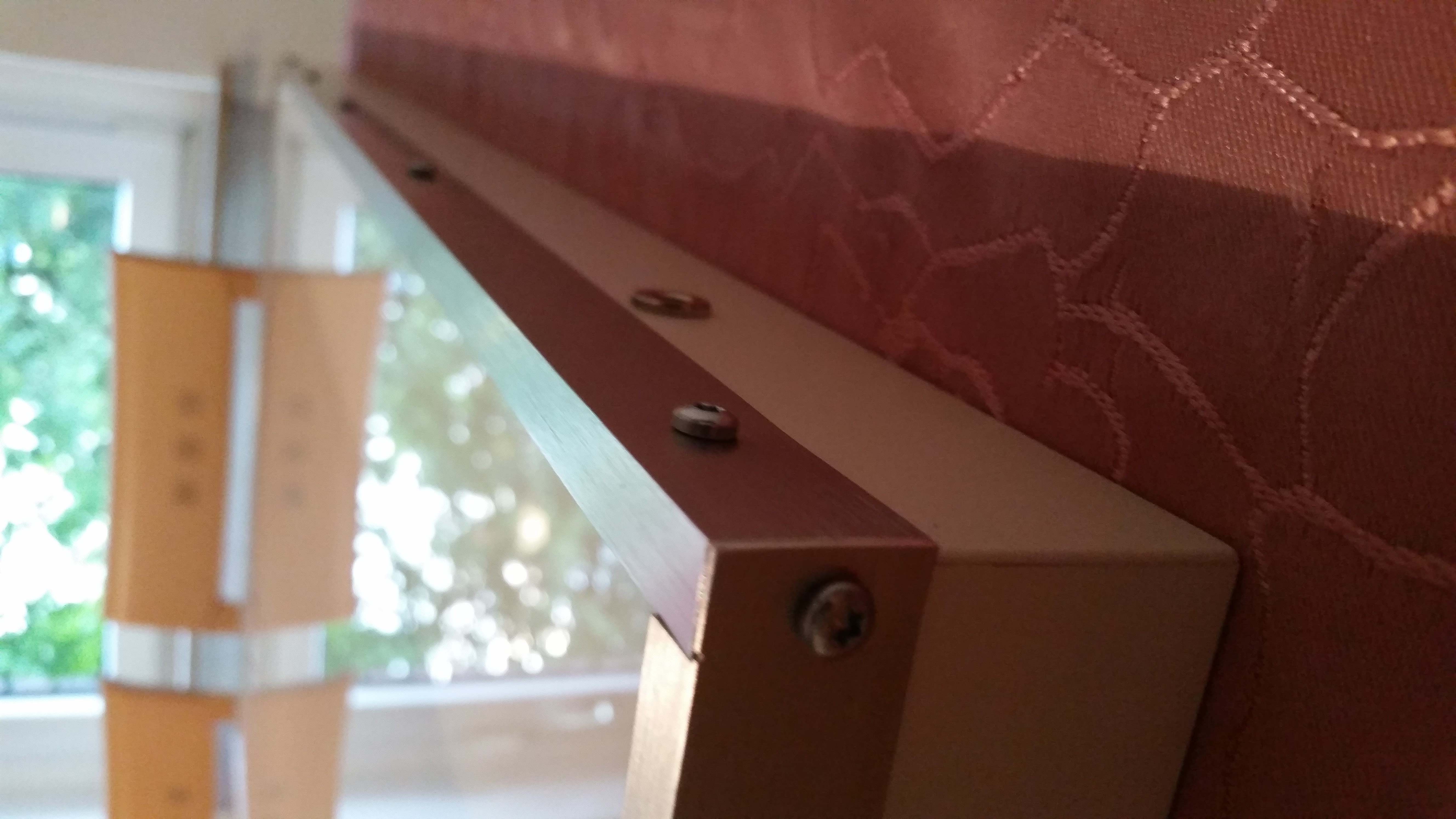 Um das Licht zu brechen, musste ich noch eine Plexiglas-Platte oder eine Glasplatte besorgen. Um das Aussehen des Tisches zu verschonern, habe ich mich fur eine Glasplatte entschieden. Damit das Licht gebrochen wird, wurde ein Milchüberfang wei Glas ausgewahlt. Dieses wird haufig fur Tischplatten verwendet und ist mit einer Keramikschicht beschichtet. Da das Glas jedoch 4 mm dick war, konnte es nicht mehr in das ausgeschnittene Rechteck gelegt werden. Deshalb habe ich mich dazu entschieden, das Glas auf den gesamten Tisch zu legen und dieses mit Alu-Leisten an der Seite zu befestigen.